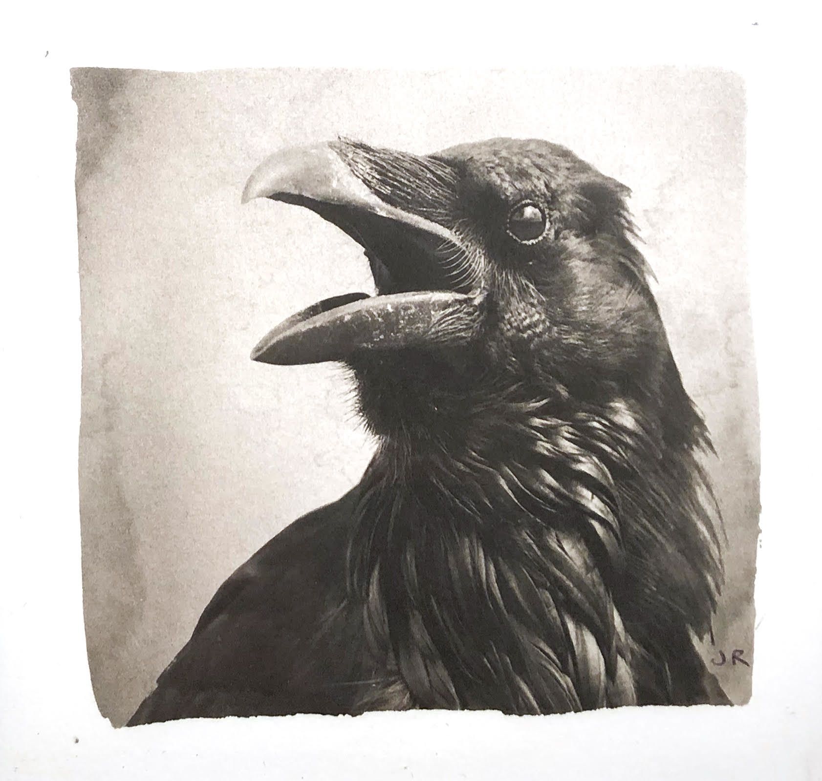 Raven, 2021 5.5x5.5, Palladium with Watercolor framed judyroan.com