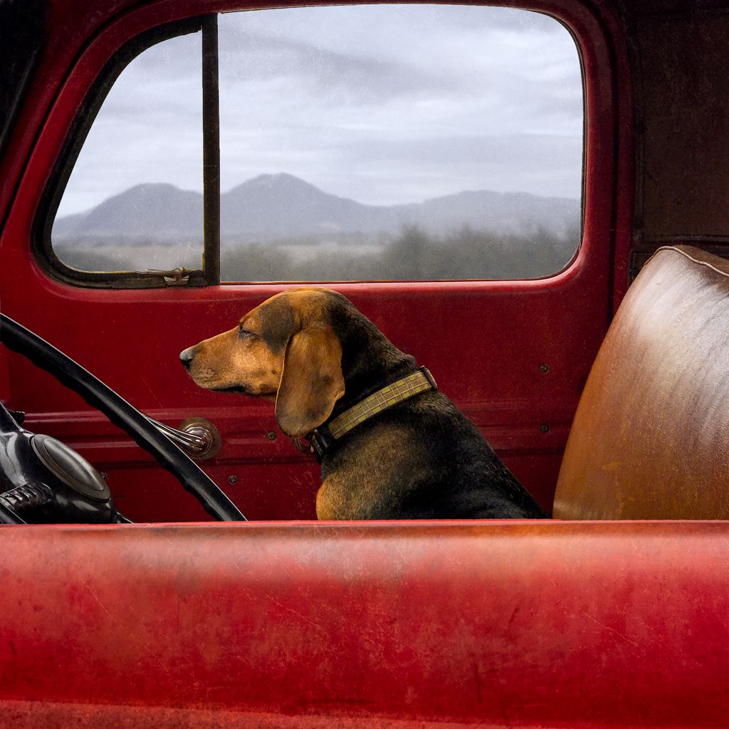 Hound In Red Truck, 2017 12x12, archival pigment print Unframed wizmosis.com