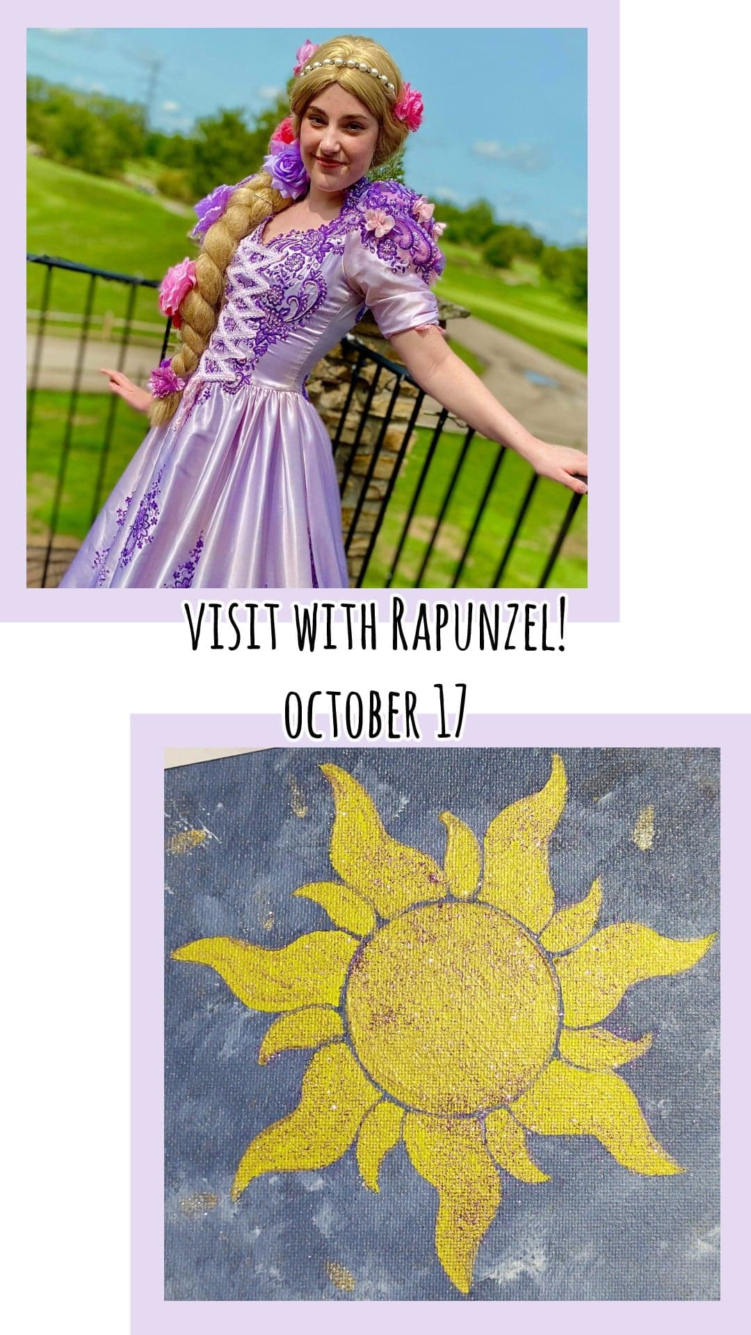 Rapunzel is coming to the studio! Join us as we paint the sun symbol from the movie!