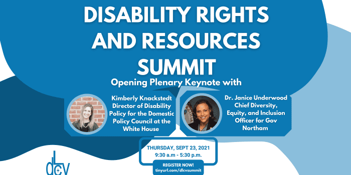 The disAbility Law Center of Virginia (dLCV) is virtually hosting the disAbility Rights and Resources Summit on September 23rd, 2021 from 9:30 am – 5:30 pm. We are looking to attract attendees from all over the Commonwealth who are interested in learning more about the latest knowledge, resources that are available to all members of the disabilities community in Virginia. We are excited to offer three session topic tracks to support our overall theme of social justice and racial equity among people with disabilities: 1) Resources, 2) Criminal Justice and Law Enforcement, 3) Education.