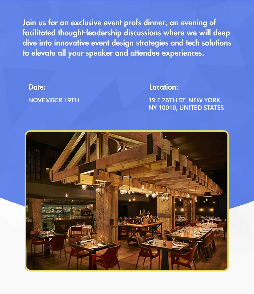 Join us for an exclusive event profs dinner, an evening of facilitated thought-leadership discussions where we will deep dive into innovative event design strategies and tech solutions to elevate all your speaker and attendee experiences.