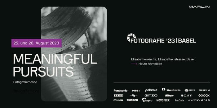 Am 25. und 26. August 2023 veranstaltet Foto Marlin die Fotografie '23 - Meaningful Pursuits, die jährliche interaktive Messe für alle Fotografiebegeisterten . Die Fotografie '23 findet im Kulturzentrum Elisabethenkirche statt und zeichnet sich durch ein anspruchsvolles Programm aus, das das Beste des fotografischen Mediums in seiner ganzen Vielfalt präsentiert.