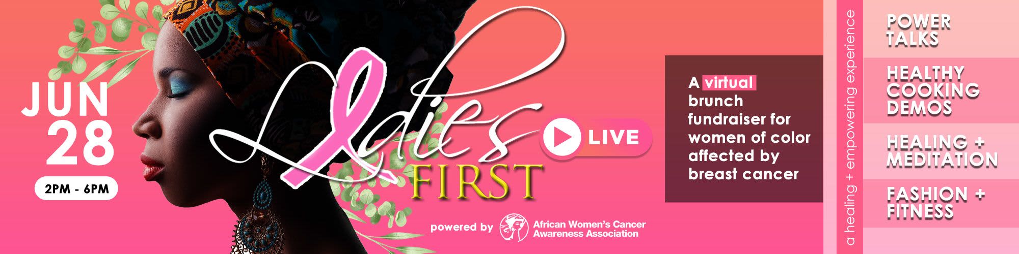 Ladies First is an annual brunch-fundraiser created to build awareness and support for women of color that have been directly or indirectly affected by breast cancer. Due to COVID-19, we've turned Ladies First into an engaging live-stream telethon featuring doctor-led power talks, fashion + fitness, a cooking demo, and more to raise $10,000 for our Stay Safe initiative.