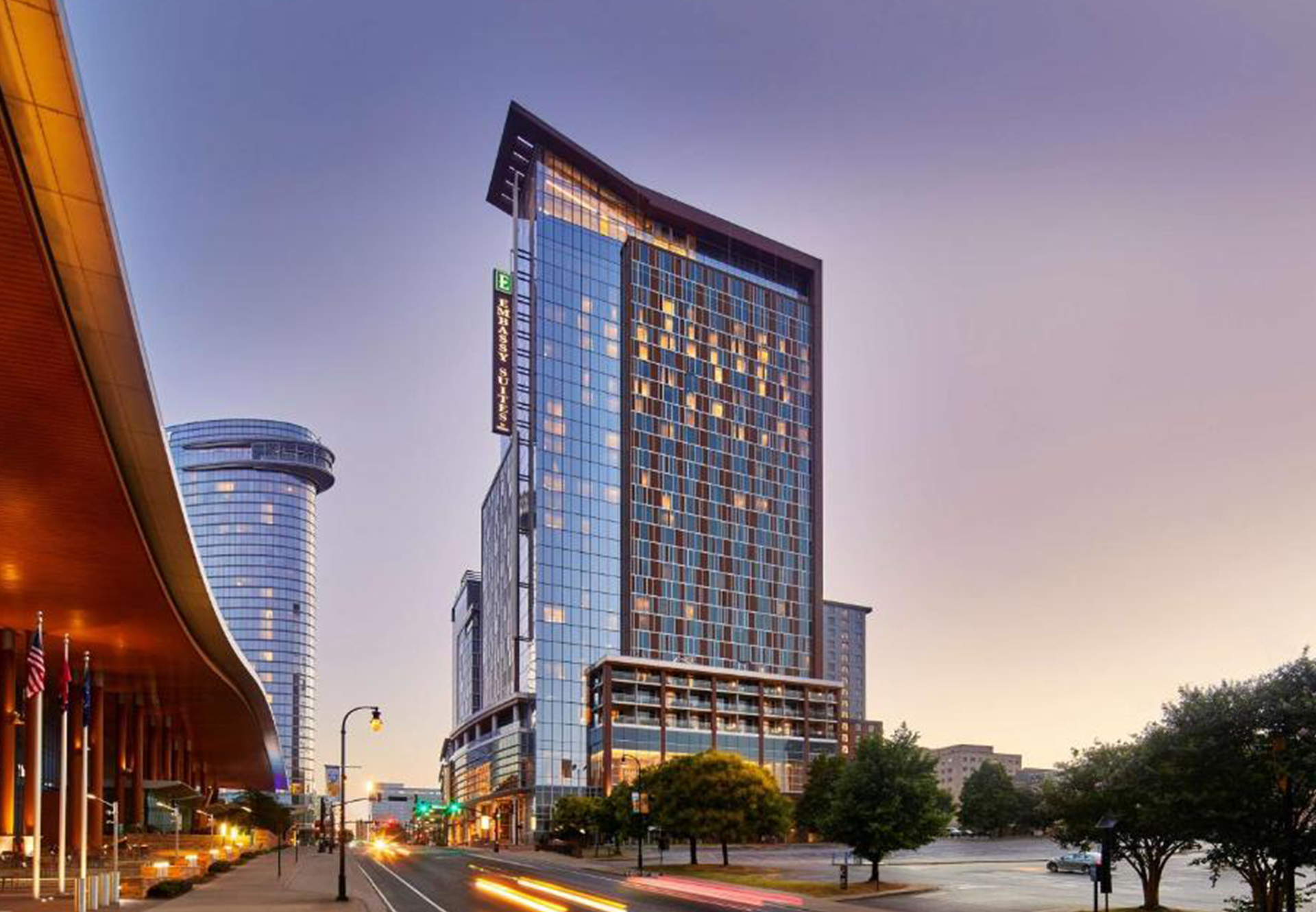 Embassy Suites by Hilton Nashville Downtown offers spacious all-suite accommodations in the heart of downtown, just steps from Broadway and Nashville’s top attractions. Guests can enjoy complimentary made-to-order breakfast, an evening reception, and convenient access to restaurants, music venues, and entertainment.